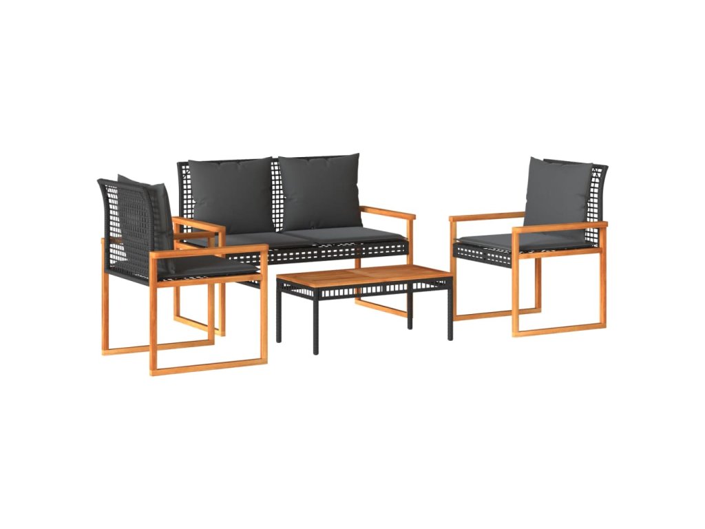 4dílná zahradní sedací souprava s poduškami černá polyratan 365858