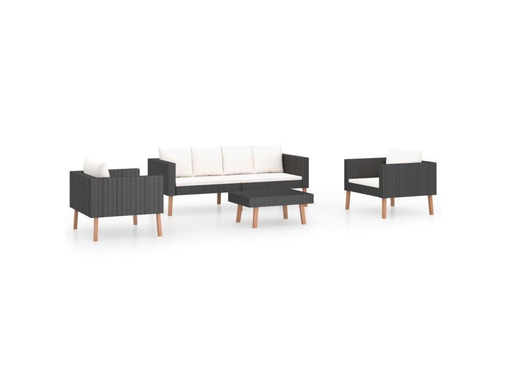 4dílná zahradní sedací souprava s poduškami polyratan černá 3059334