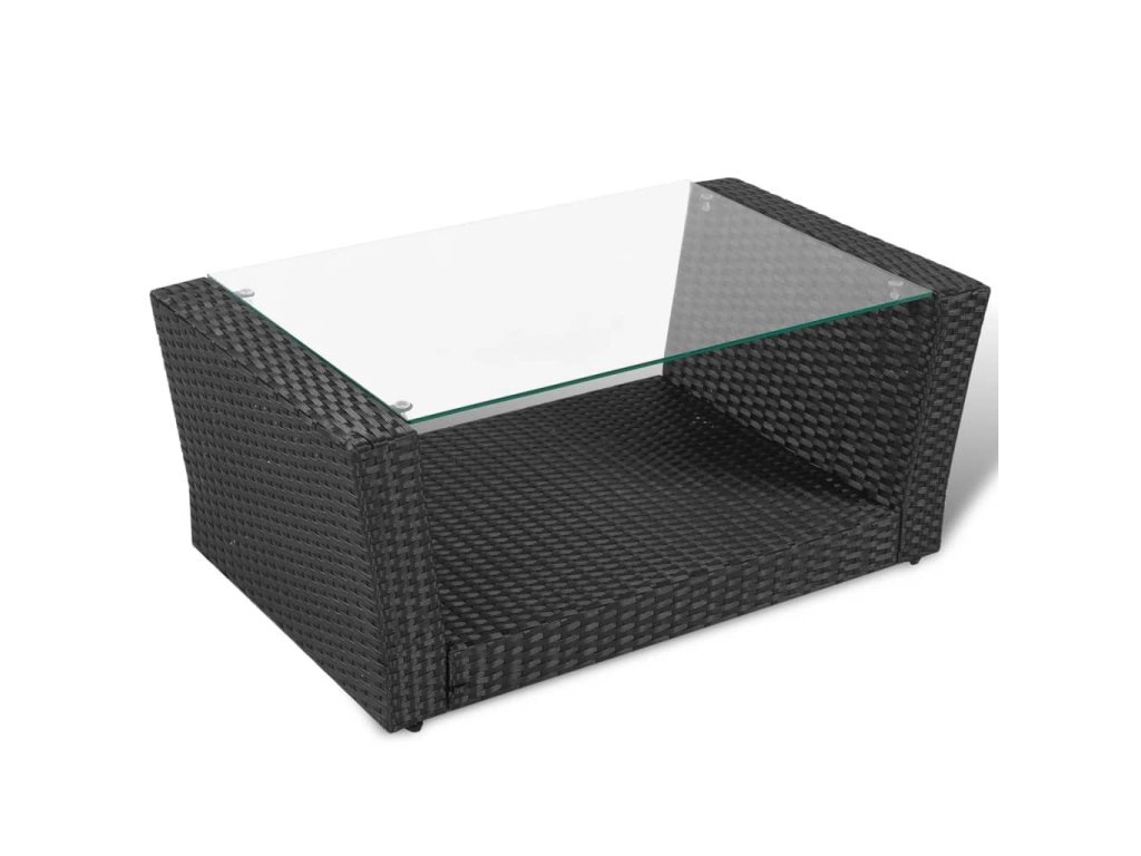 - Materiál: PE ratan + ocelový rám s povrchovou úpravou + skleněná stolní deska