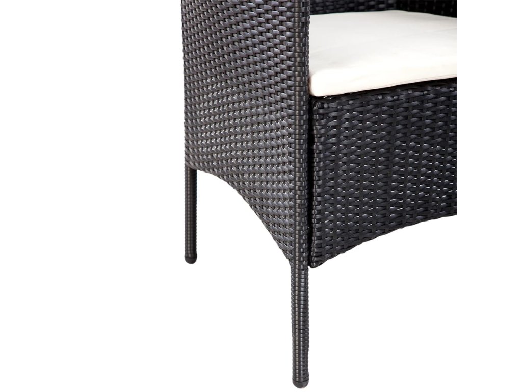 - Materiál: PE (polyetylenový) ratan + ocelový rám s práškovým nástřikem + skleněná stolní deska