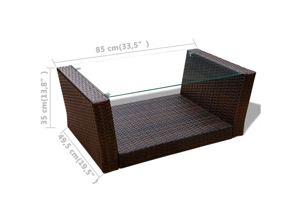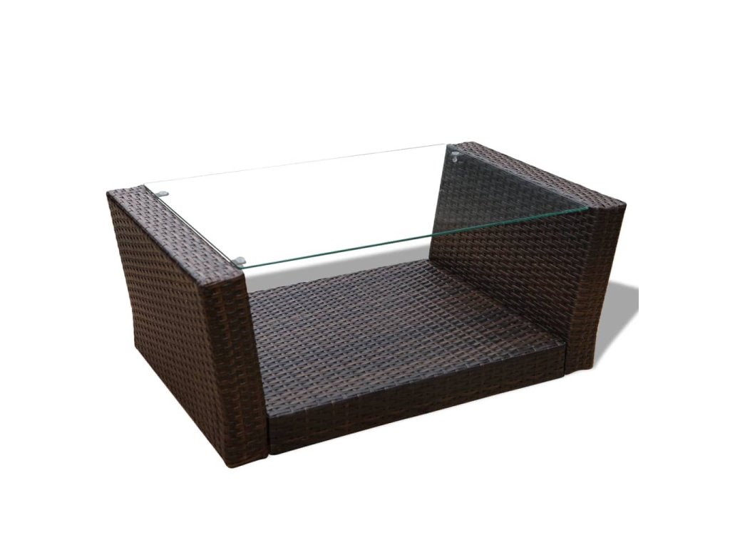 - Materiál: PE ratan + ocelový rám s práškovým nástřikem + skleněná stolní deska