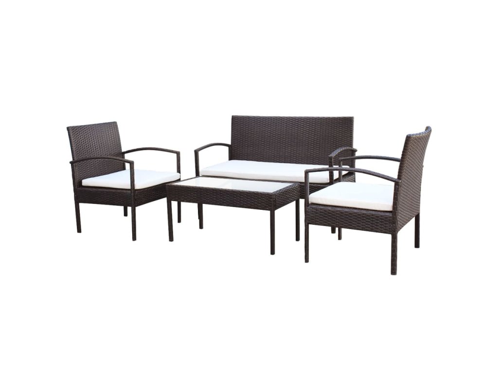 4dílná zahradní sedací souprava s poduškami polyratan hnědá 42672