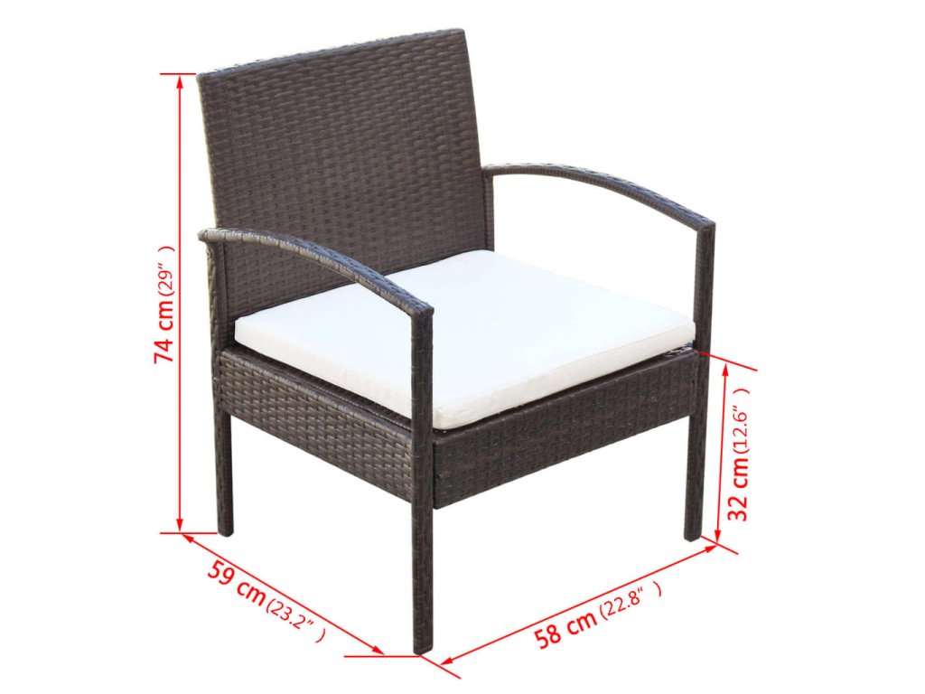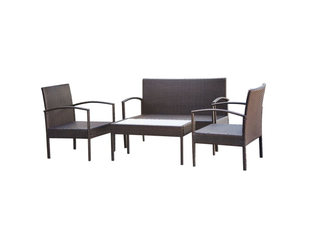 Balení obsahuje jeden konferenční stolek, jednu pohovku a dvě křesla. Poznámka: Doporučujeme soupravu za deště, sněhu a mrazu přikrýt.