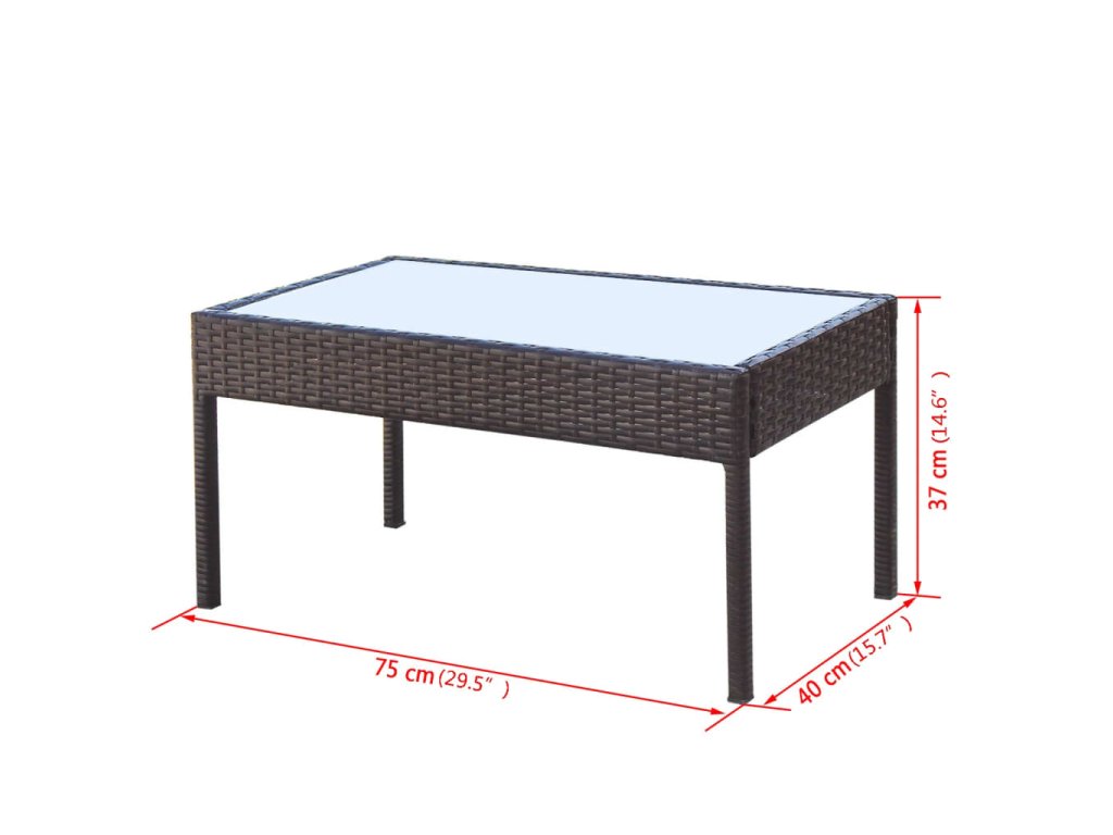 - Materiál: Ocelový rám + PE ratan + stolní deska z mléčného skla