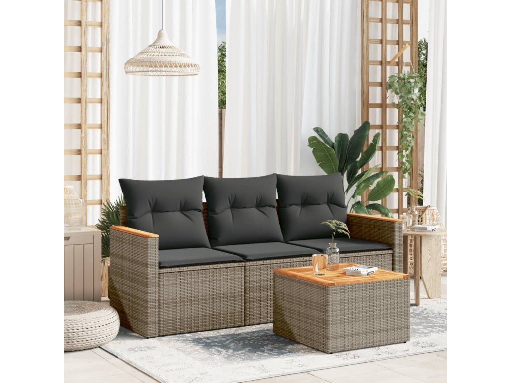 4dílná zahradní sedací souprava s poduškami šedá polyratan 3225766
