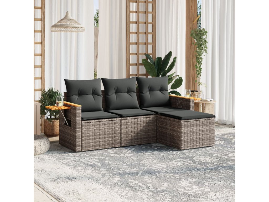 4dílná zahradní sedací souprava s poduškami šedá polyratan 3226746