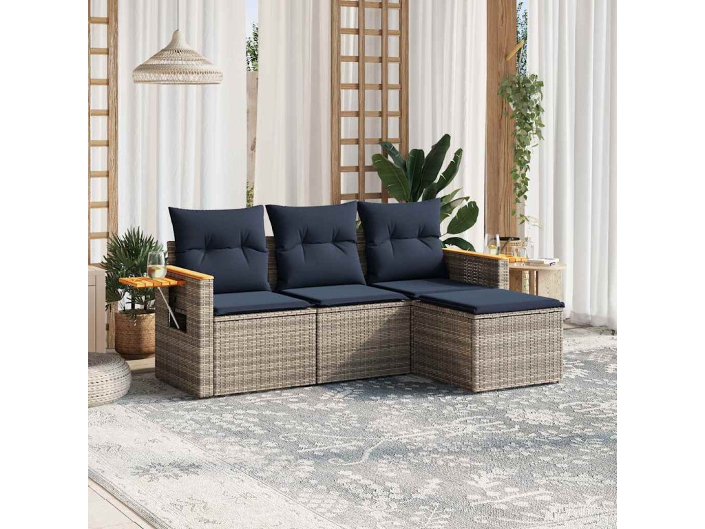 4dílná zahradní sedací souprava s poduškami šedá polyratan 3226747