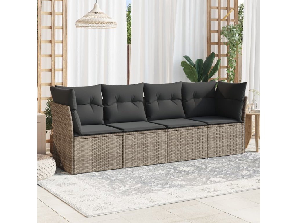 4dílná zahradní sedací souprava s poduškami šedá polyratan 3249069