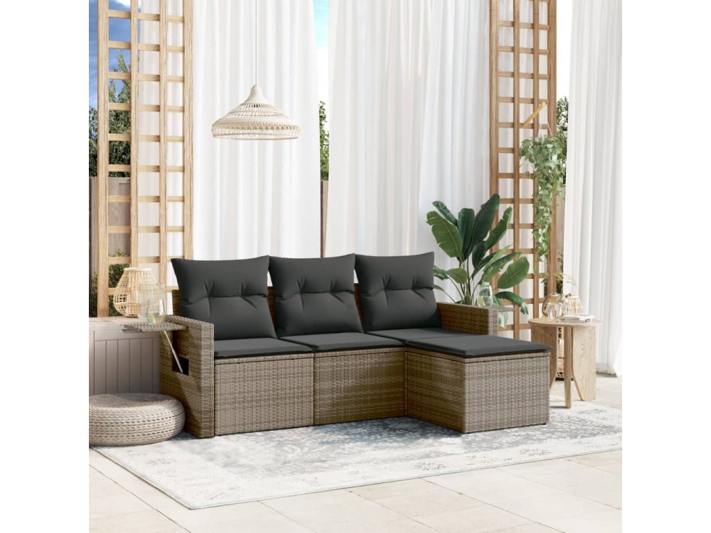 4dílná zahradní sedací souprava s poduškami šedá polyratan 3252407