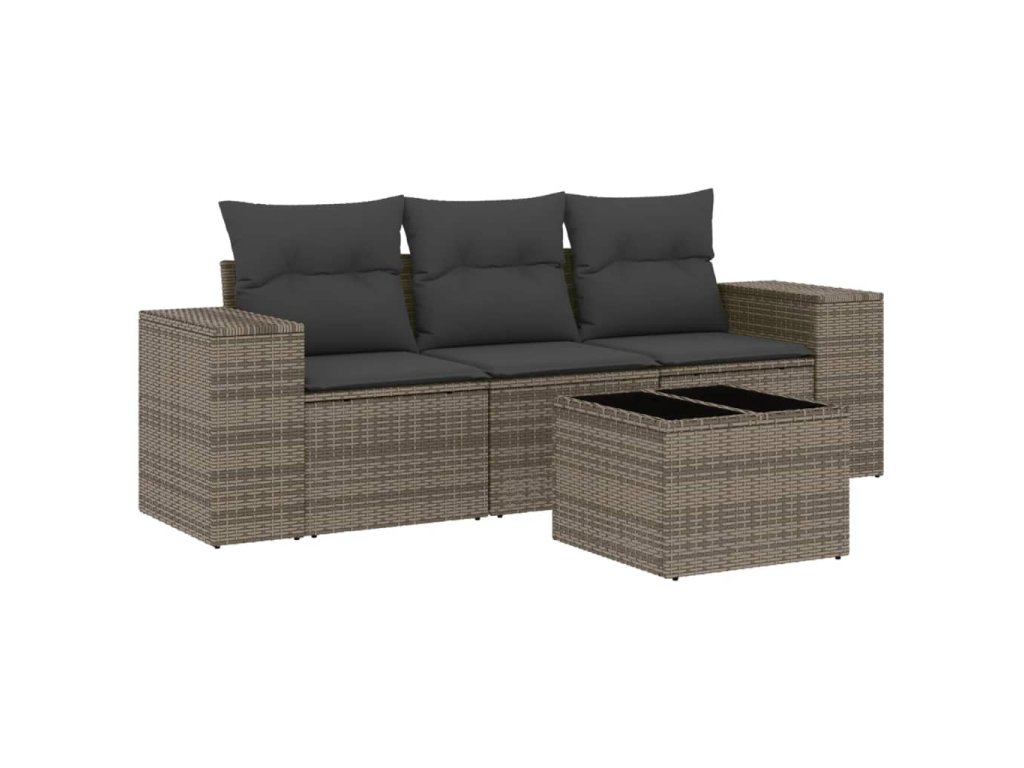 4dílná zahradní sedací souprava s poduškami šedá polyratan 3254607
