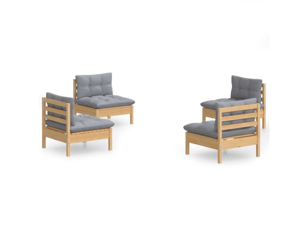 4dílná zahradní sedací souprava s šedými poduškami borovice 3096027