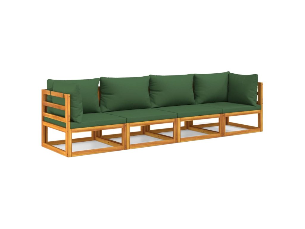 4dílná zahradní sedací souprava zelené podušky masivní dřevo 3155315