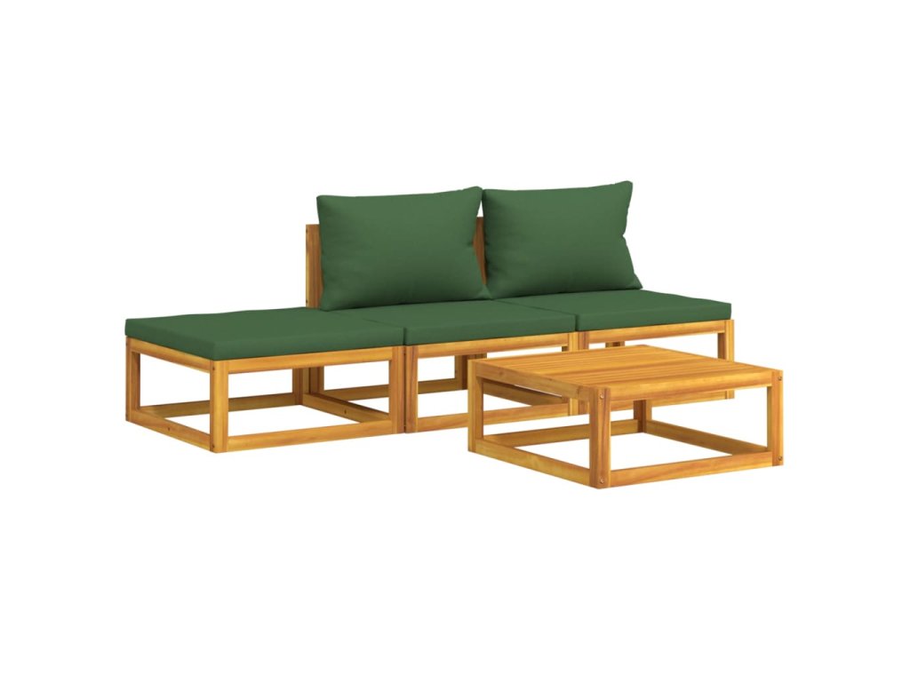 4dílná zahradní sedací souprava zelené podušky masivní dřevo 3155334
