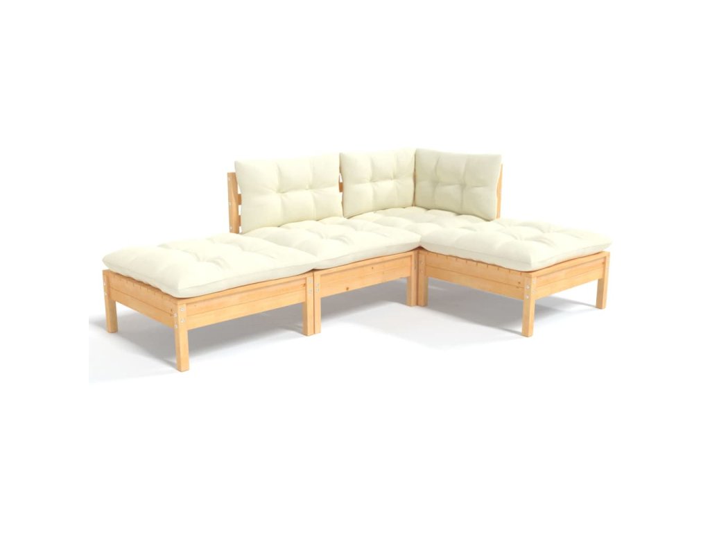 4dílná zahradní souprava krémové podušky masivní borovice 3096286