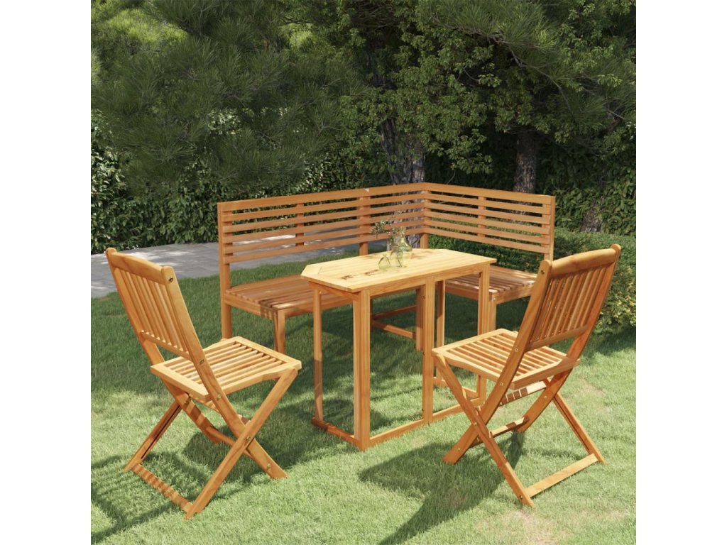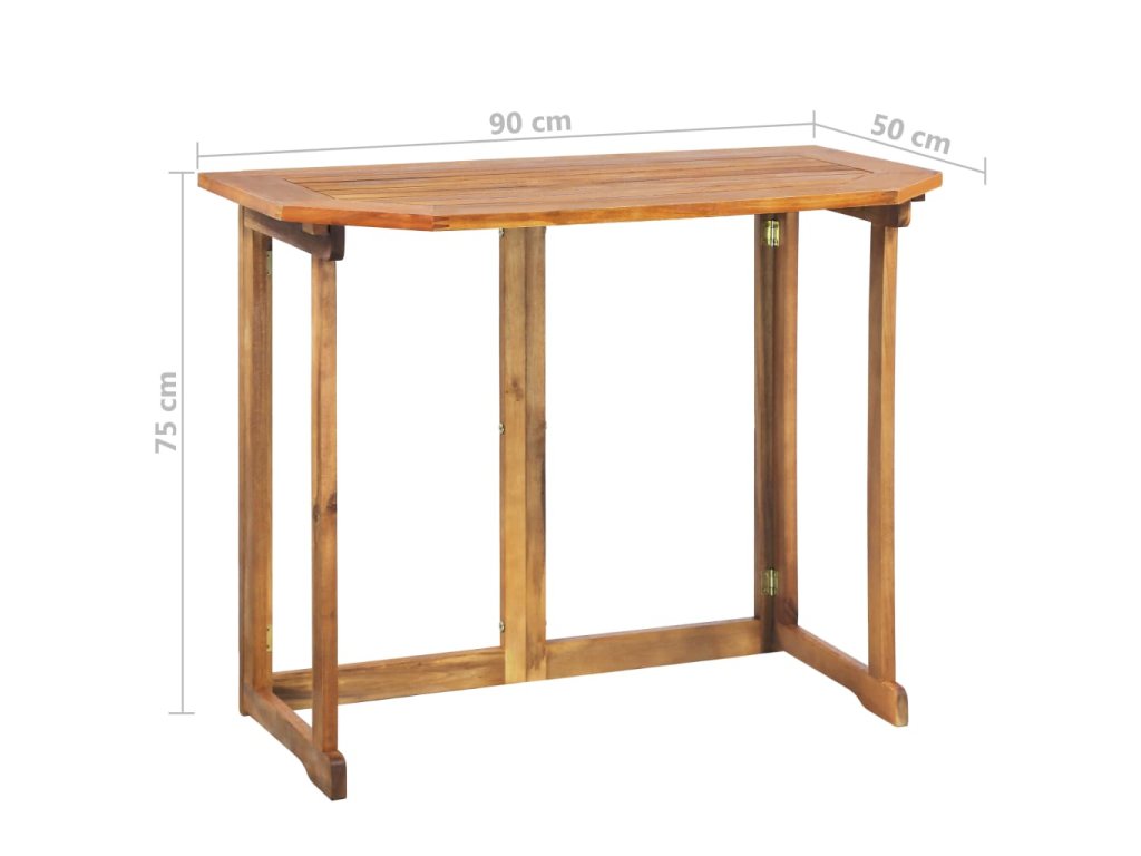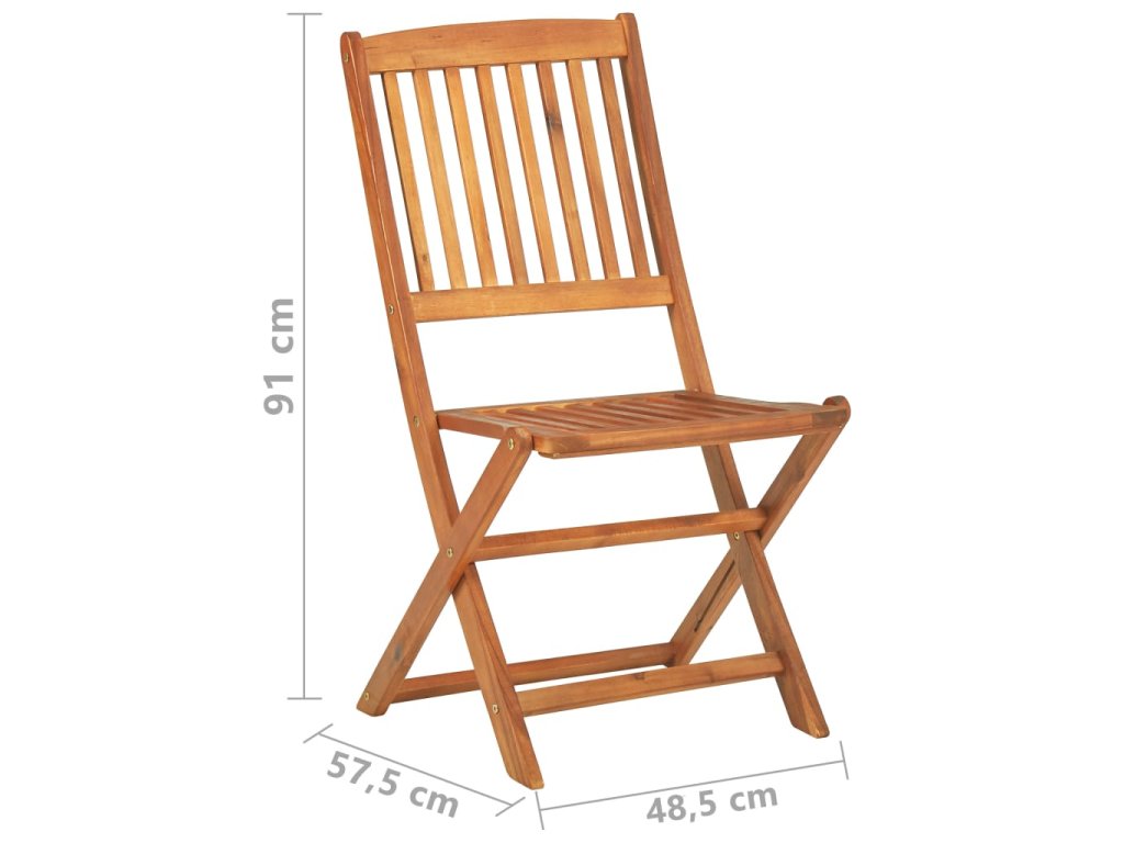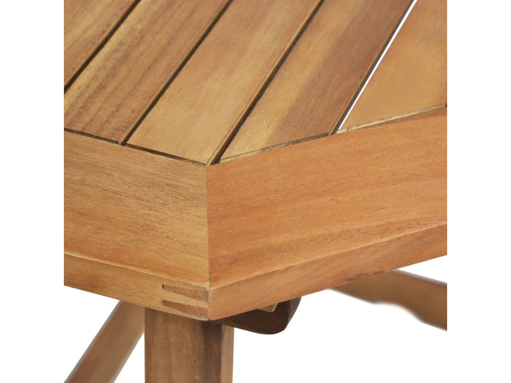 Set je vyrobený z masivní akácie, tvrdého tropického dřeva, které je odolné vůči klimatickým vlivům a má velmi dlouhou životnost, proto se hodí k venkovnímu použití. Povrch stolu je ošetřený olejem, takže se snadno čistí, postačí vám k tomu navlhčený hadřík. Stůl i židle jsou skládací pro snadnou úschovu a přenášení.
