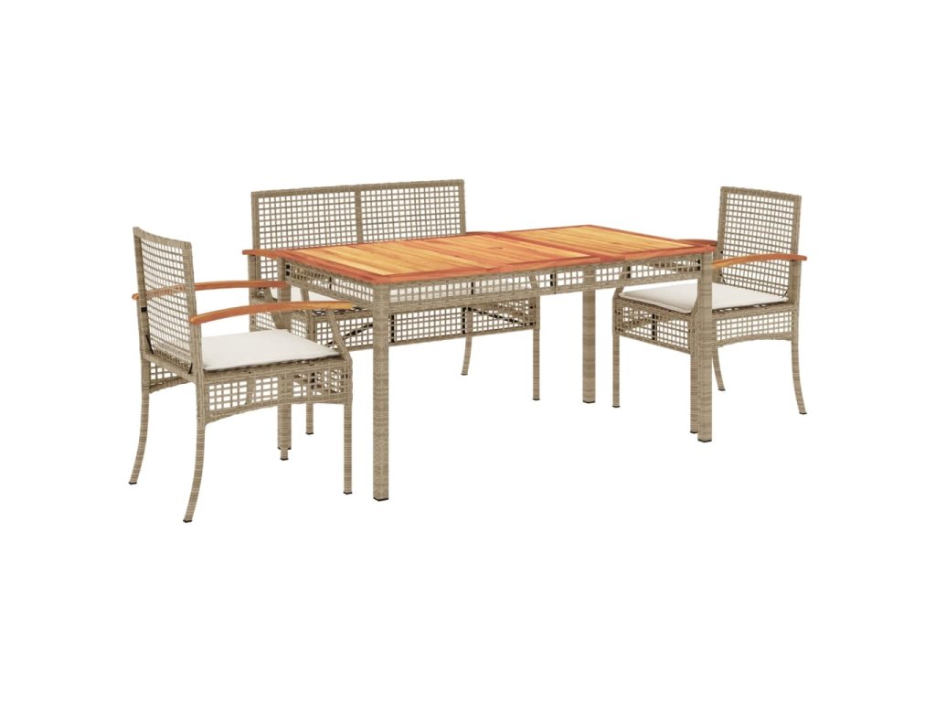 4dílný zahradní jídelní set s poduškami béžový polyratan 3213585