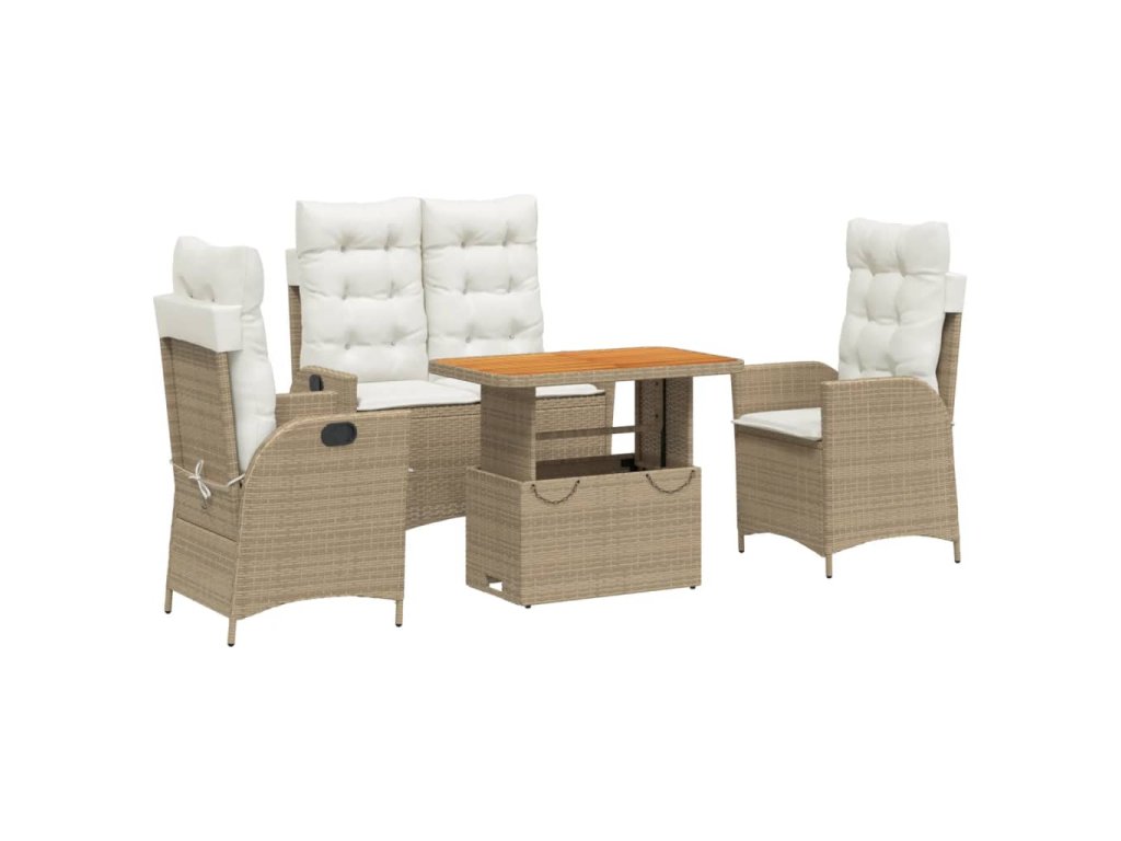 4dílný zahradní jídelní set s poduškami béžový polyratan 3277479