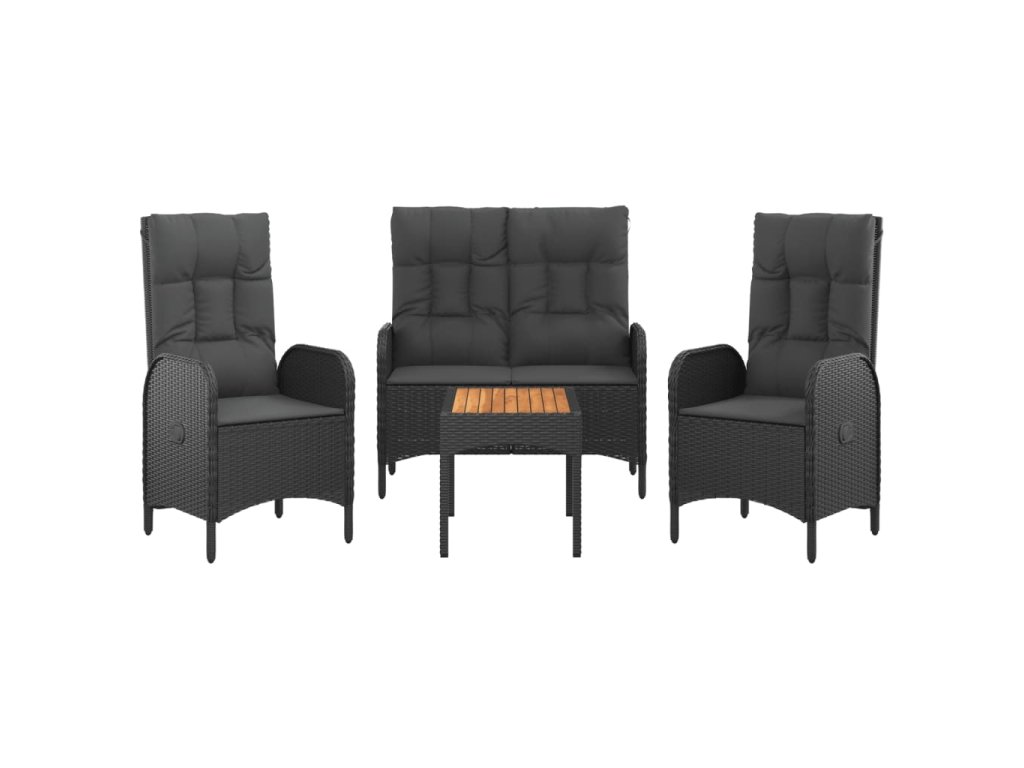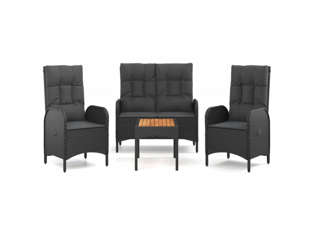 4dílný zahradní jídelní set s poduškami černý polyratan 3185084