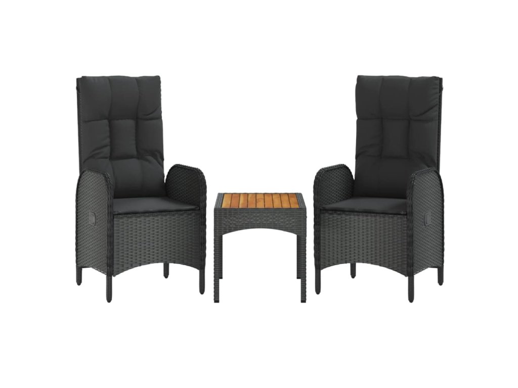 - Materiál: masivní akáciové dřevo s olejovou povrchovou úpravou, PE ratan, práškově lakovaná ocel