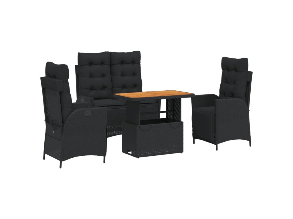 4dílný zahradní jídelní set s poduškami černý polyratan 3277456