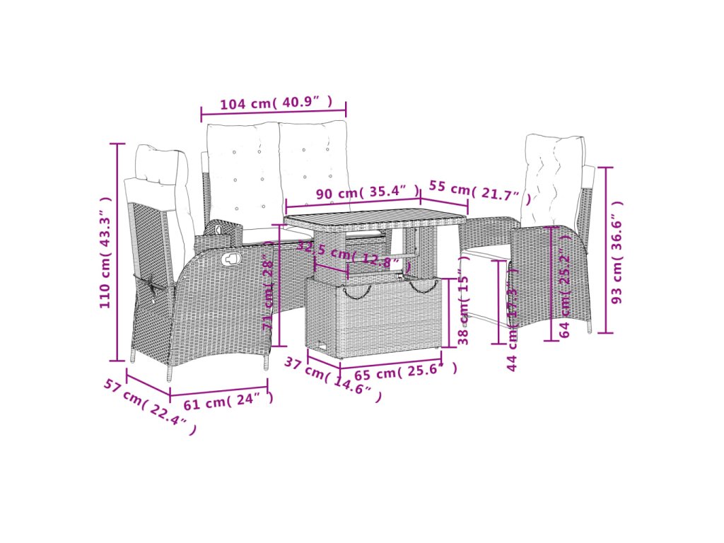 - Rozměry ve sklopené poloze: 104 x 86 x 83 cm (Š x H x V)