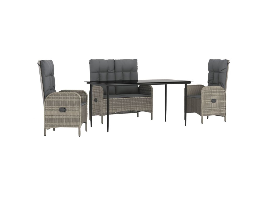 4dílný zahradní jídelní set s poduškami šedá polyratan 3203503