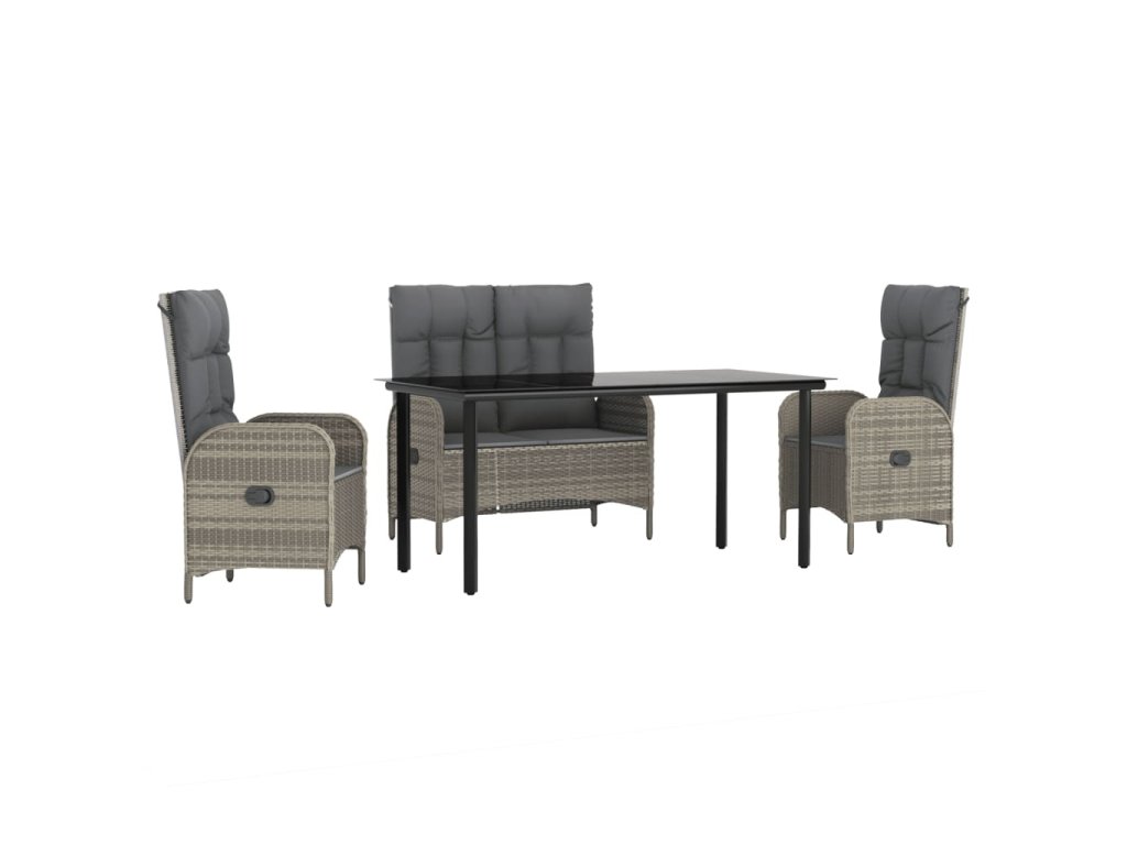 4dílný zahradní jídelní set s poduškami šedá polyratan 3203507