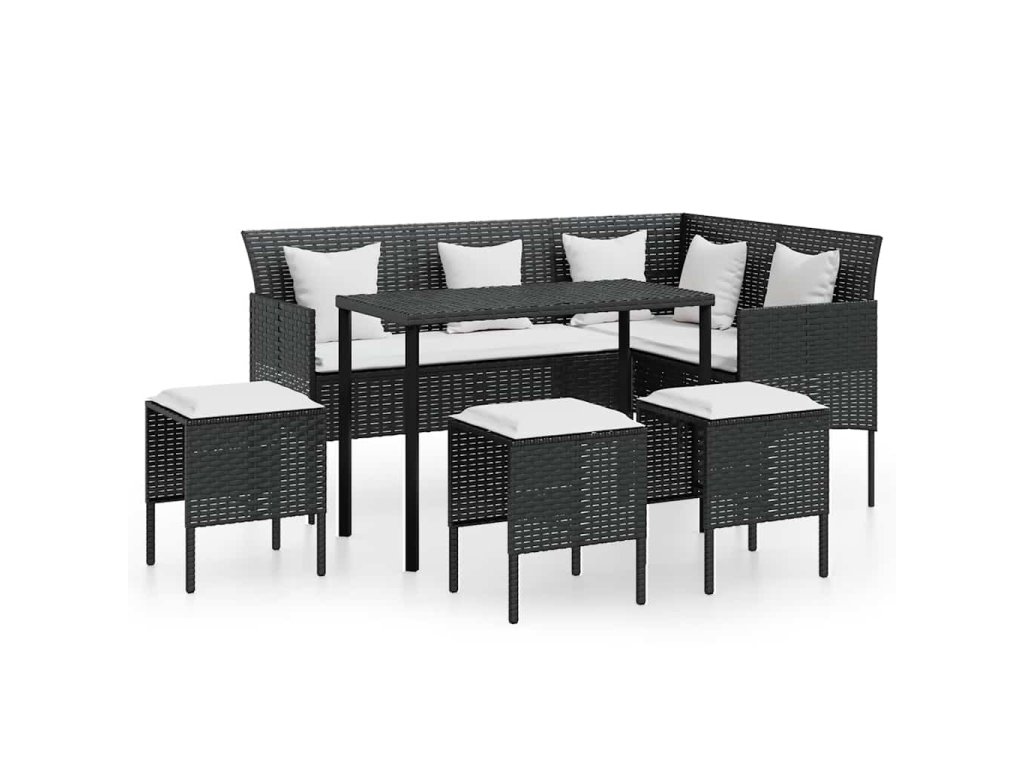 5dílná sedací souprava ve tvaru L s poduškami polyratan černá 318578