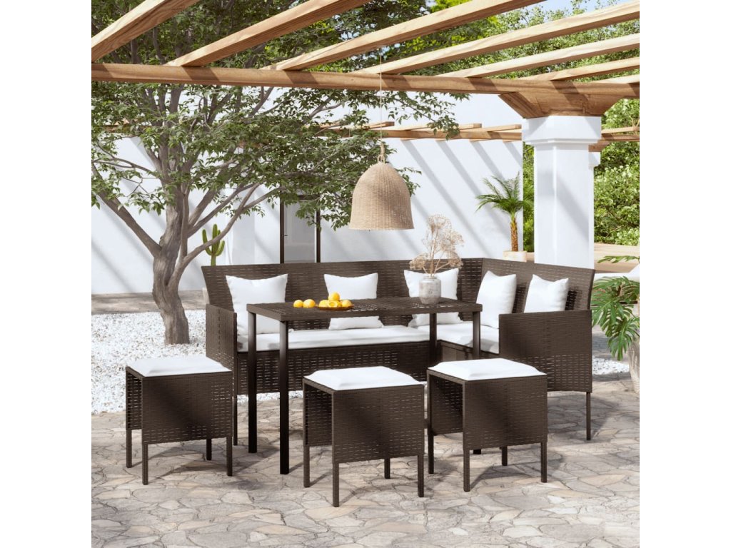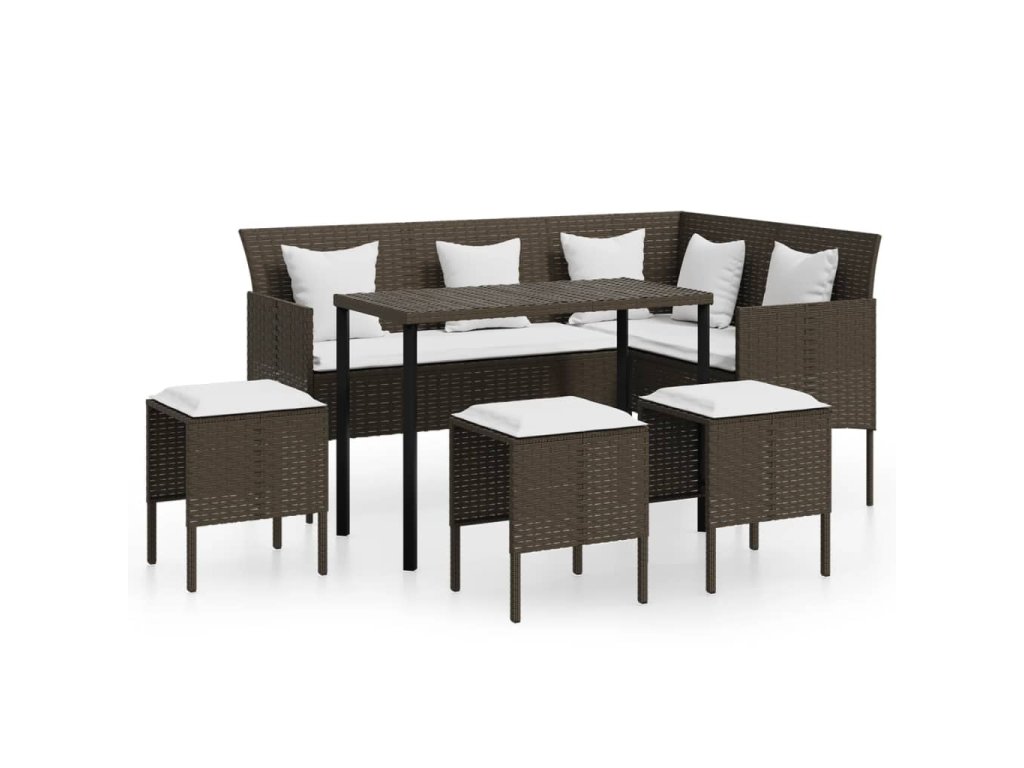 5dílná sedací souprava ve tvaru L s poduškami polyratan hnědá 318580