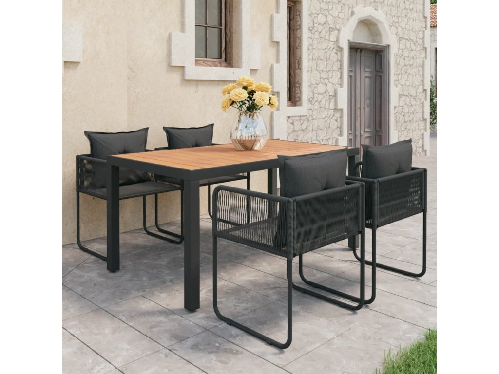 5dílná zahradní jídelní souprava PVC ratan černá a hnědá 3060108