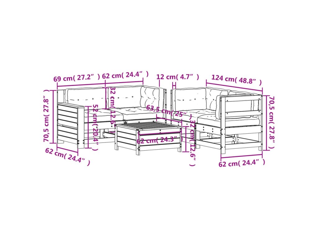 5dílná zahradní sedací souprava a podušky impregnovaná borovice 3250819