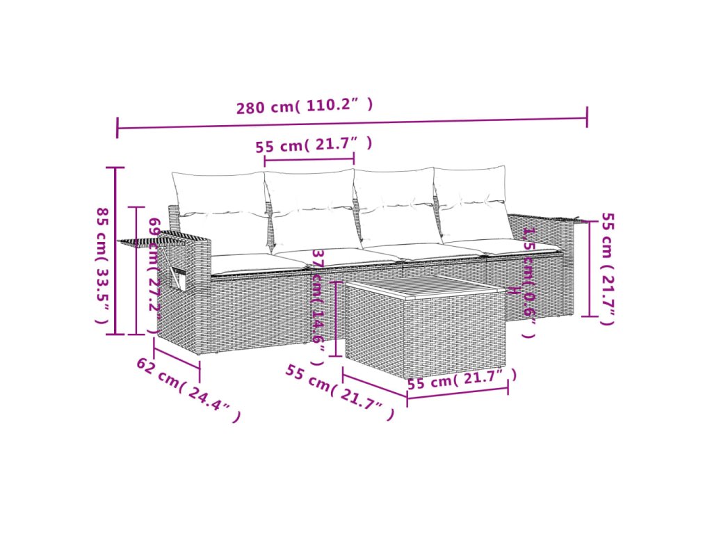 Tato zahradní sedací souprava je dokonalým doplňkem vaší zahrady, terasy nebo dvorku a poskytne vám pohodlné a příjemné místo, kde si můžete povídat s rodinou a přáteli nebo jen tak odpočívat a užívat si pobyt venku.