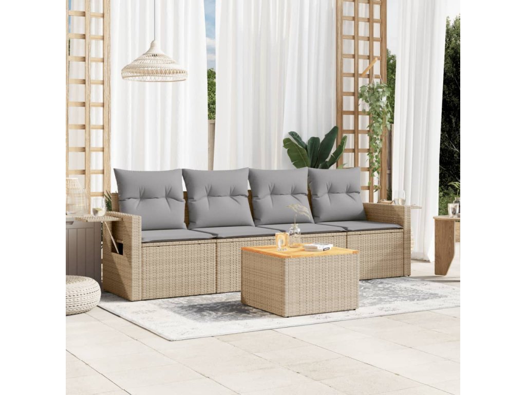 5dílná zahradní sedací souprava a podušky mix béžové polyratan 3256773
