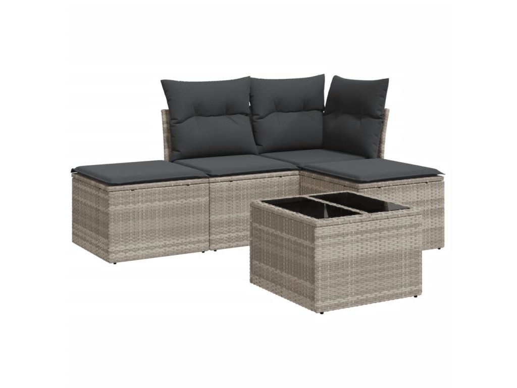 5dílná zahradní sedací souprava a podušky světle šedá polyratan 3217492