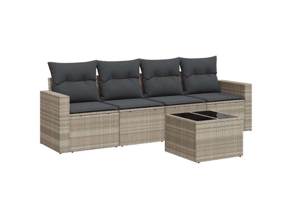 5dílná zahradní sedací souprava a podušky světle šedá polyratan 3218682
