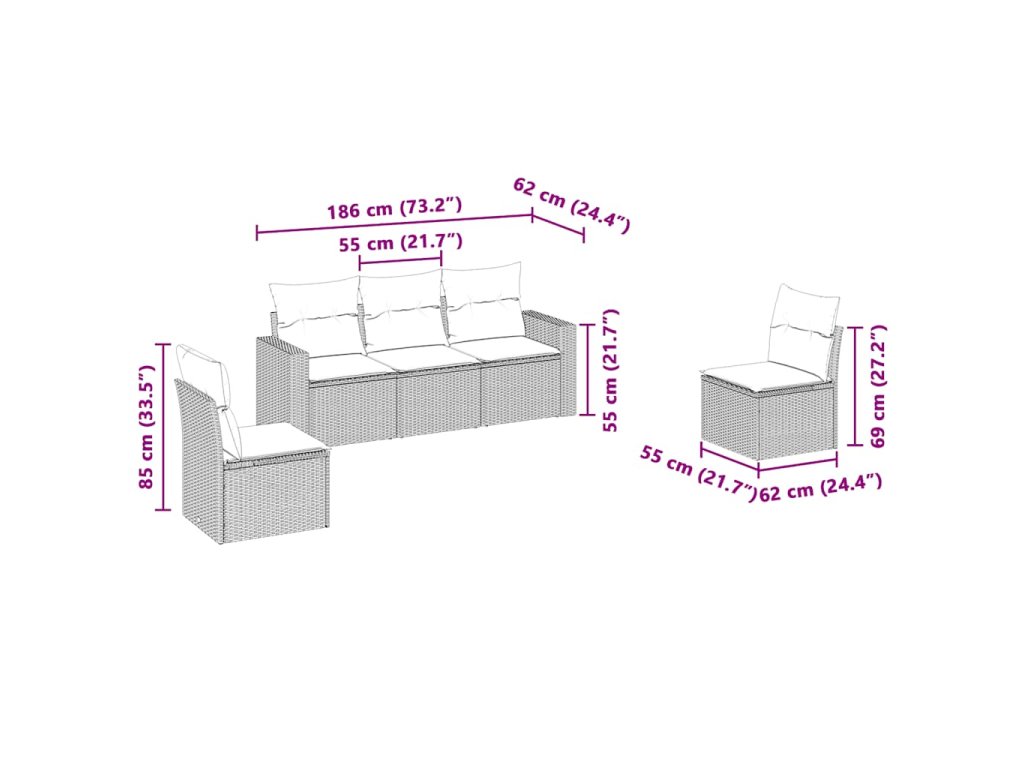 Tato zahradní sedací souprava je dokonalým doplňkem vaší zahrady, terasy nebo dvorku a poskytne vám pohodlné a příjemné místo, kde si můžete povídat s rodinou a přáteli nebo jen tak odpočívat a užívat si pobyt venku.