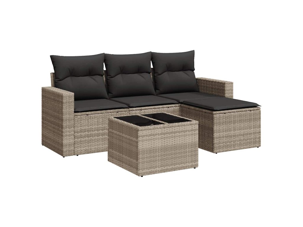 5dílná zahradní sedací souprava a podušky světle šedá polyratan 3218872