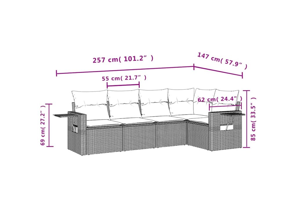 5dílná zahradní sedací souprava a podušky světle šedá polyratan 3220131