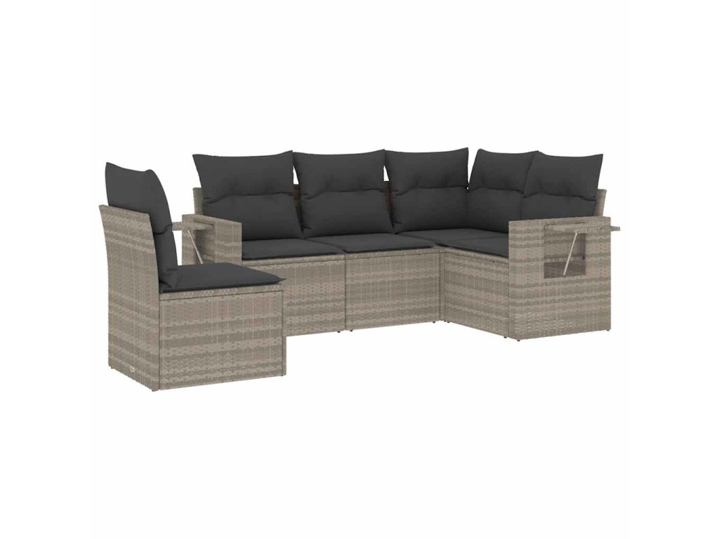 5dílná zahradní sedací souprava a podušky světle šedá polyratan 3220171