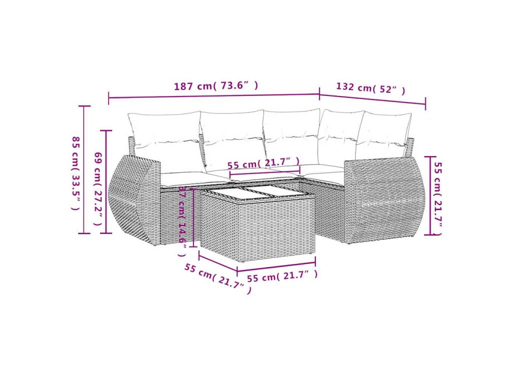 Tato zahradní sedací souprava je dokonalým doplňkem vaší zahrady, terasy nebo dvorku a poskytne vám pohodlné a příjemné místo, kde si můžete povídat s rodinou a přáteli nebo jen tak odpočívat a užívat si pobyt venku.