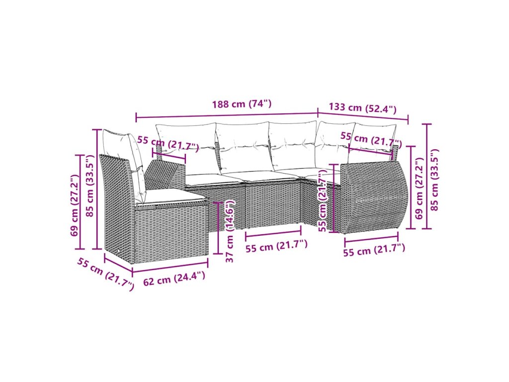 Tato zahradní sedací souprava je dokonalým doplňkem vaší zahrady, terasy nebo dvorku a poskytne vám pohodlné a příjemné místo, kde si můžete povídat s rodinou a přáteli nebo jen tak odpočívat a užívat si pobyt venku.