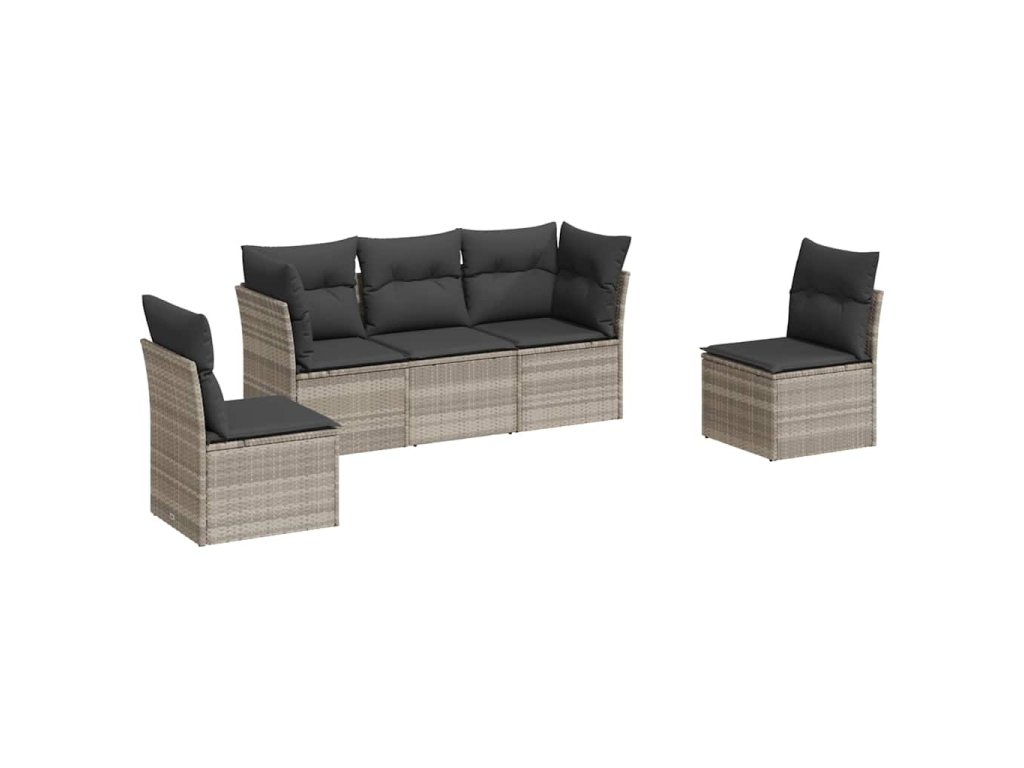 5dílná zahradní sedací souprava a podušky světle šedá polyratan 3249191