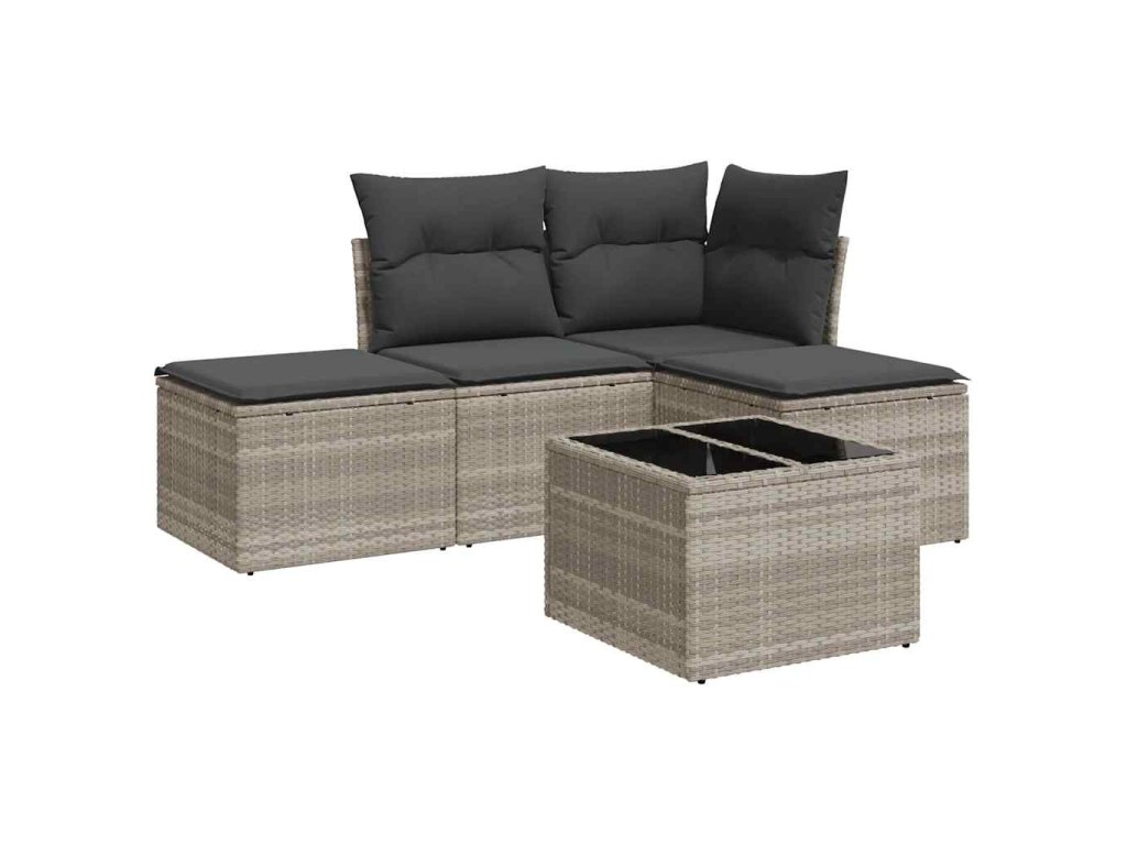 5dílná zahradní sedací souprava a podušky světle šedá polyratan 3249331