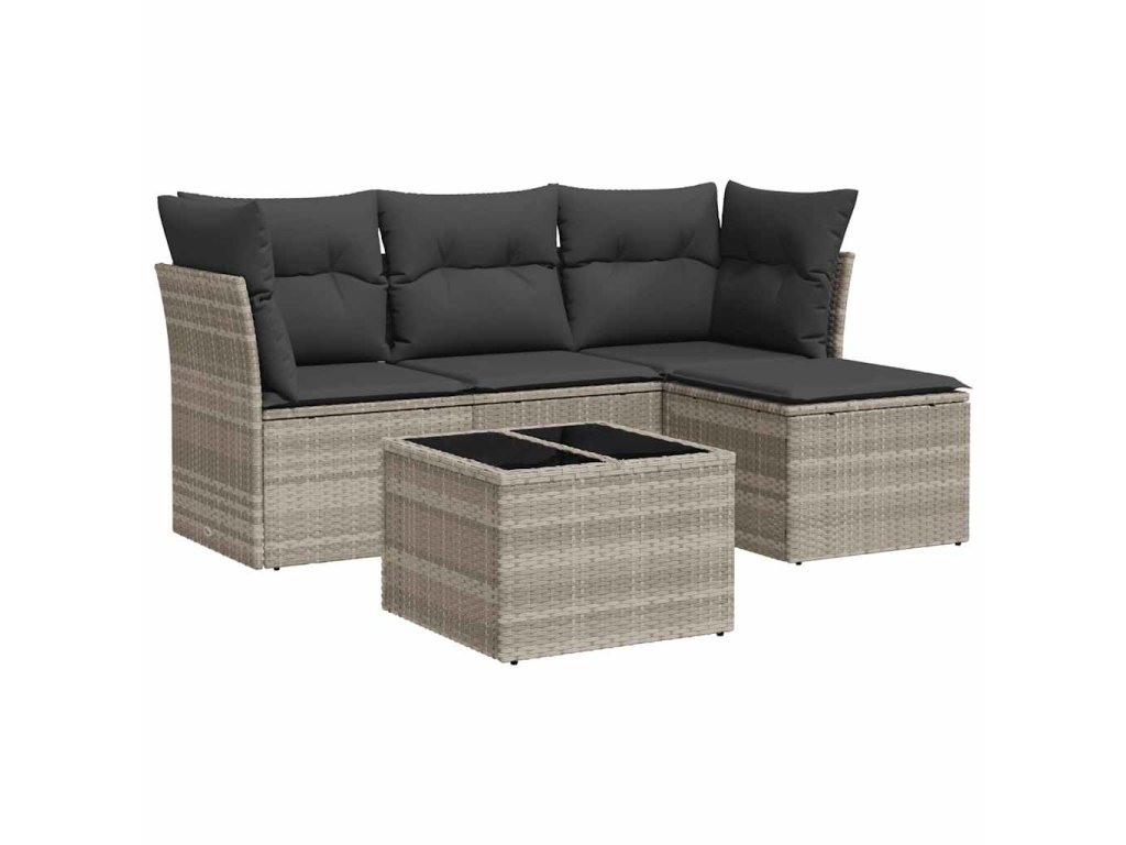 5dílná zahradní sedací souprava a podušky světle šedá polyratan 3249391