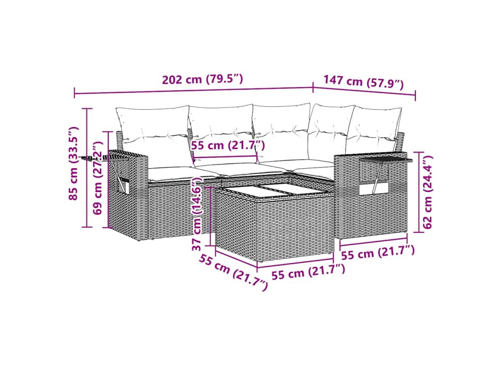 Tato zahradní sedací souprava je dokonalým doplňkem vaší zahrady, terasy nebo dvorku a poskytne vám pohodlné a příjemné místo, kde si můžete povídat s rodinou a přáteli nebo jen tak odpočívat a užívat si pobyt venku.