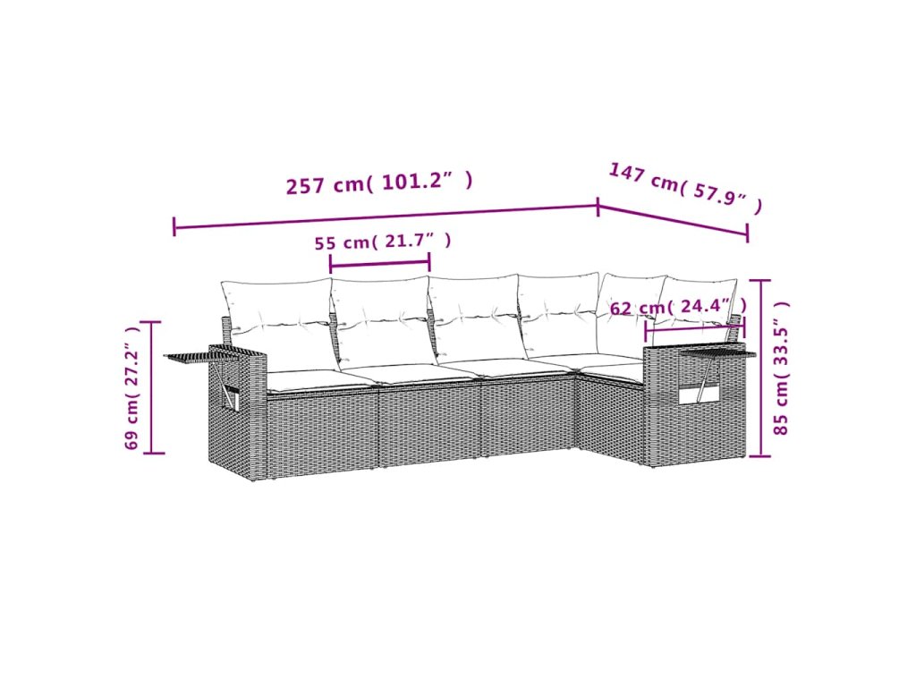 5dílná zahradní sedací souprava a podušky světle šedá polyratan 3252469