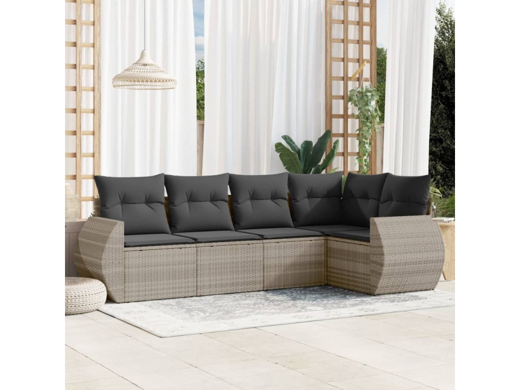 5dílná zahradní sedací souprava a podušky světle šedá polyratan 3253669