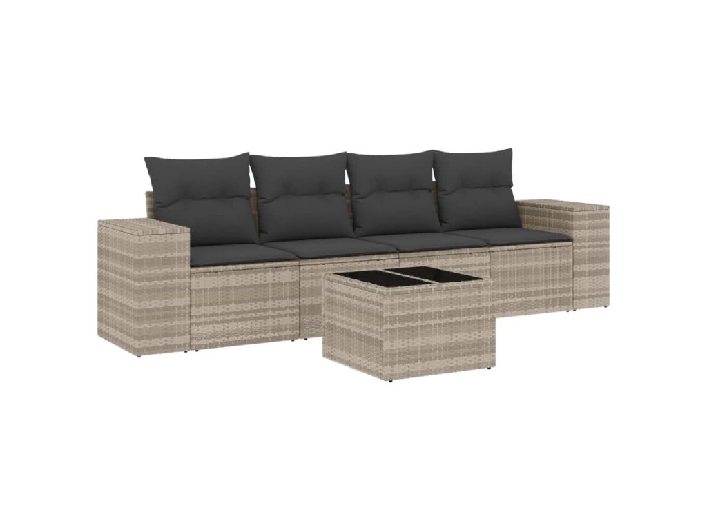 5dílná zahradní sedací souprava a podušky světle šedá polyratan 3254629