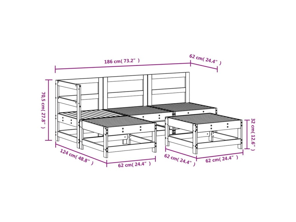 5dílná zahradní sedací souprava bílá masivní borové dřevo 3186523