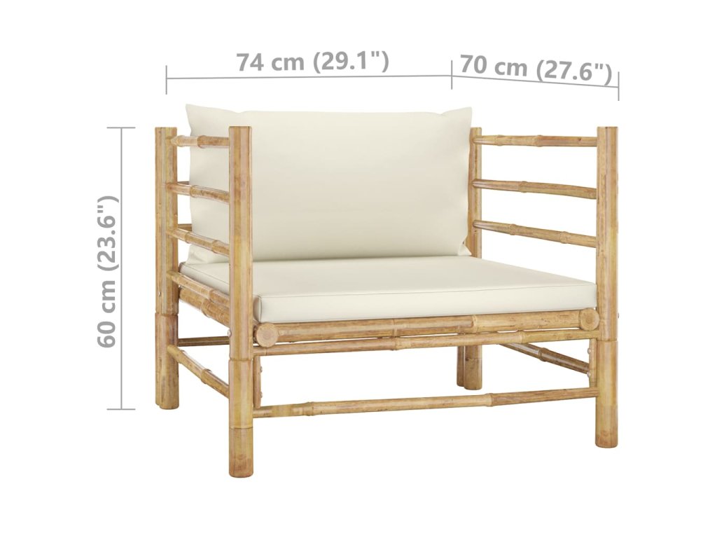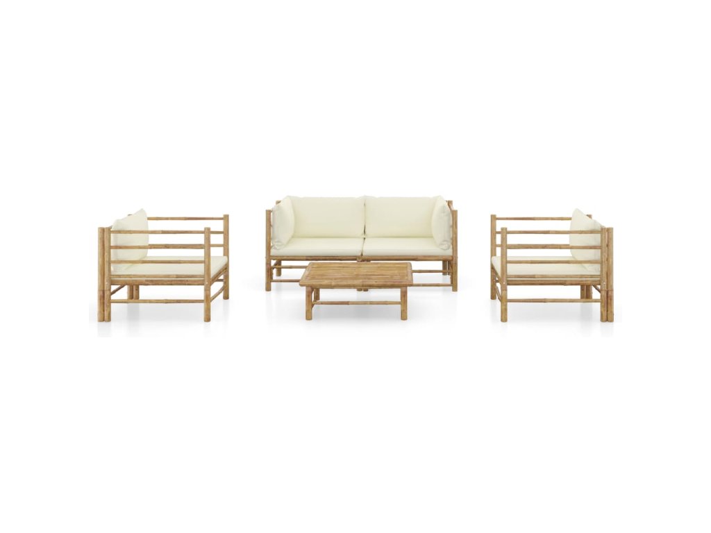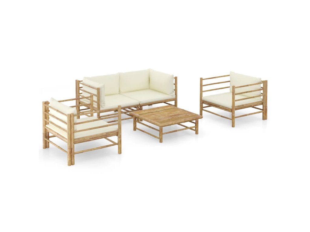 5dílná zahradní sedací souprava + krémově bílé podušky bambus 3058207
